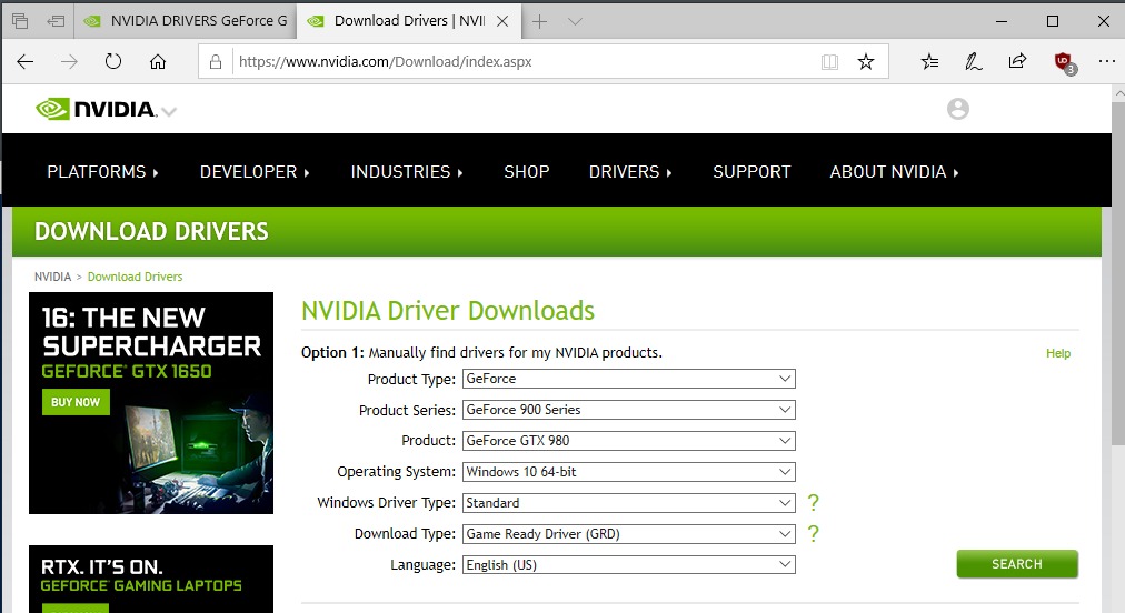 You will always find the name of the graphics card and a list of the appropriate drivers according to the type of operating system.